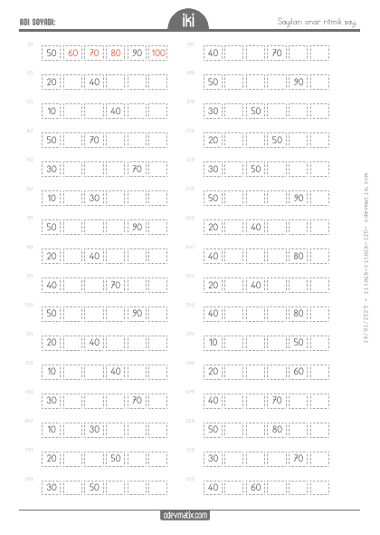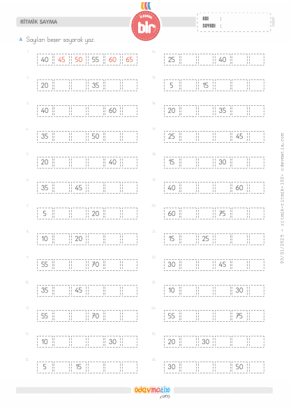 1.Sınıf Beşer Ritmik Sayma (100'e kadar)