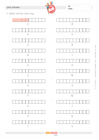 1.Sınıf Sayı Kadarını Boyama (10'a kadar)