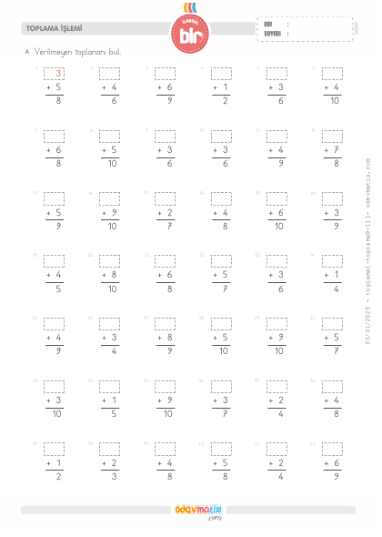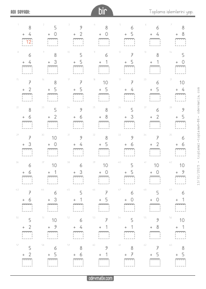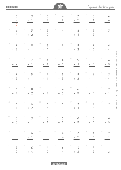 1.Sınıf Verilmeyen Toplananı Bulma (10'a Kadar) (Alt Alta)