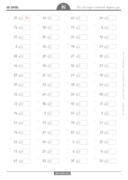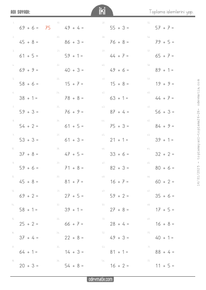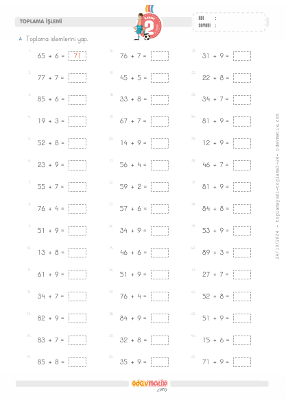 2.Sınıf 2 Basamaklı ile 1 Basamaklı Eldesiz Yan Yana Toplama İşlemi