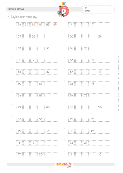 2.Sınıf Birer İleri Ritmik Sayma