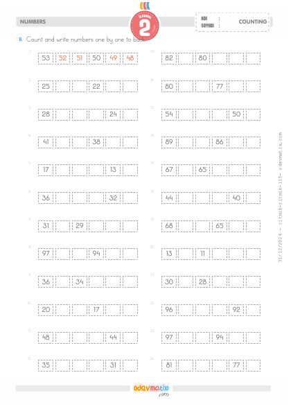 2.Sınıf Birer Geri Ritmik Sayma