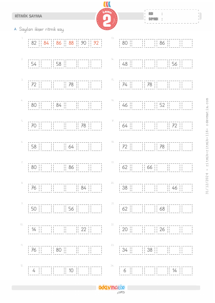 2.Sınıf İkişer İleri Ritmik Sayma
