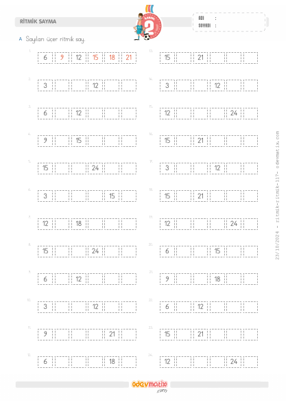 2.Sınıf Üçer İleri Ritmik Sayma