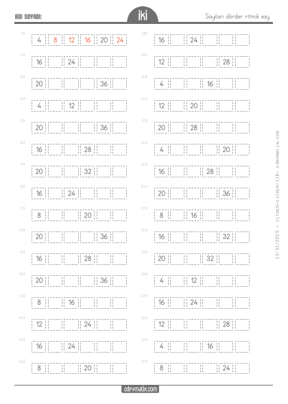 2.Sınıf Dörder İleri Ritmik Sayma