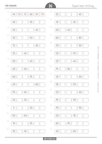 2.Sınıf Beşer İleri Ritmik Sayma