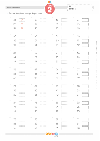 2.Sınıf Sayıları Sıralama (3 Sayılı)