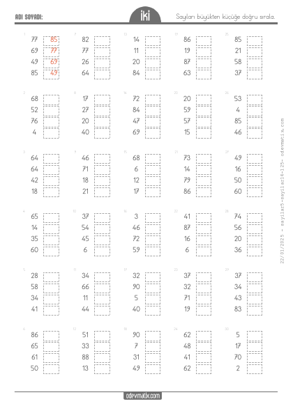 2.Sınıf Sayıları Sıralama (4 Sayılı)
