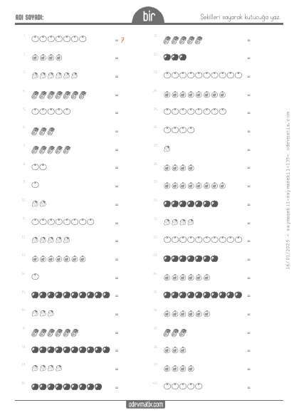 1.Sınıf Şekillerle Sayma (20'ye Kadar )