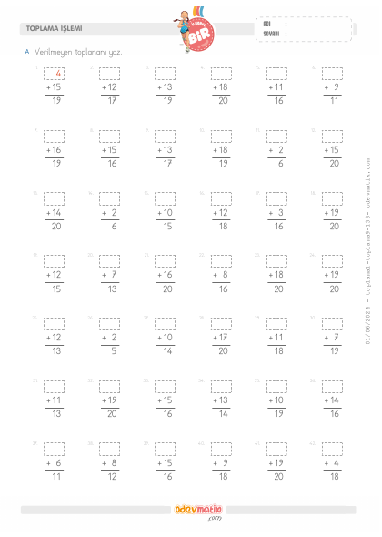 1.Sınıf 2.Seviye Toplama İşlemi(Alt-Alta)