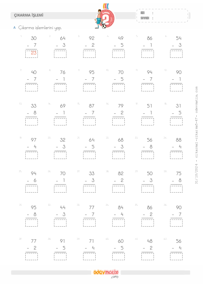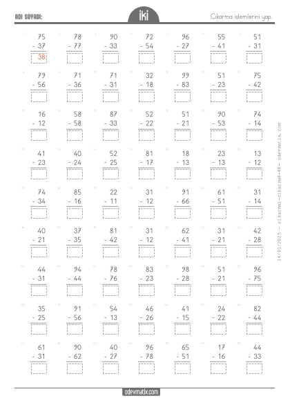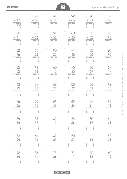 2.Sınıf 2 Basamaklı ile 1 Basamaklı Çıkarma İşlemi