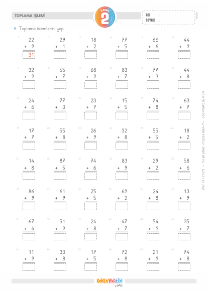 2.Sınıf 2 Basamaklı ile 1 Basamaklı Toplama İşlemi