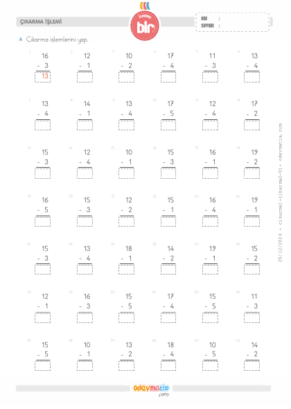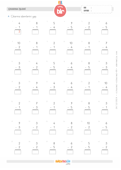 1.Sınıf Çıkarma İşlemi